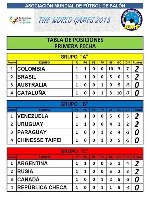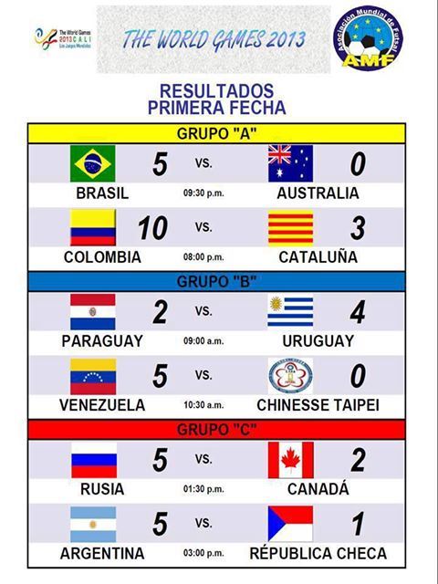 Desde FAVAFUTSAL, a continuación os mostramos las clasificaciones y resultados de las tres primeras jornadas de la modalidad de Futsal en los Juegos Mundiales, disputadas el 26, 27 y 28 de julio.