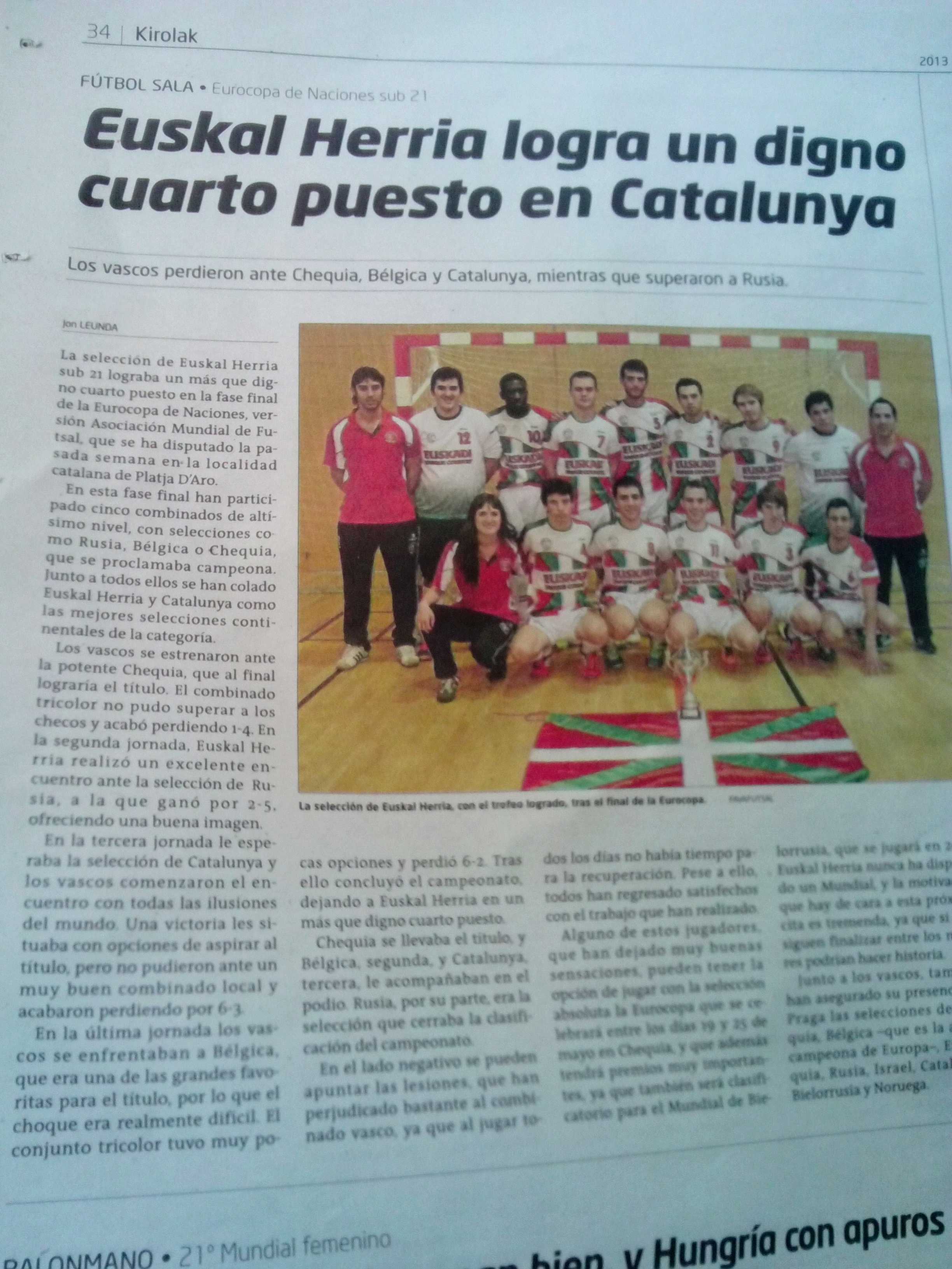 Desde FAVAFUTSAL os informamos, que hoy día 10 de diciembre, el Diário Gara, publica una noticia al respecto de la participación y clasificación final de la Selección de Euskal Herria U21, en el Campeonato de Europa de selecciones nacionales.