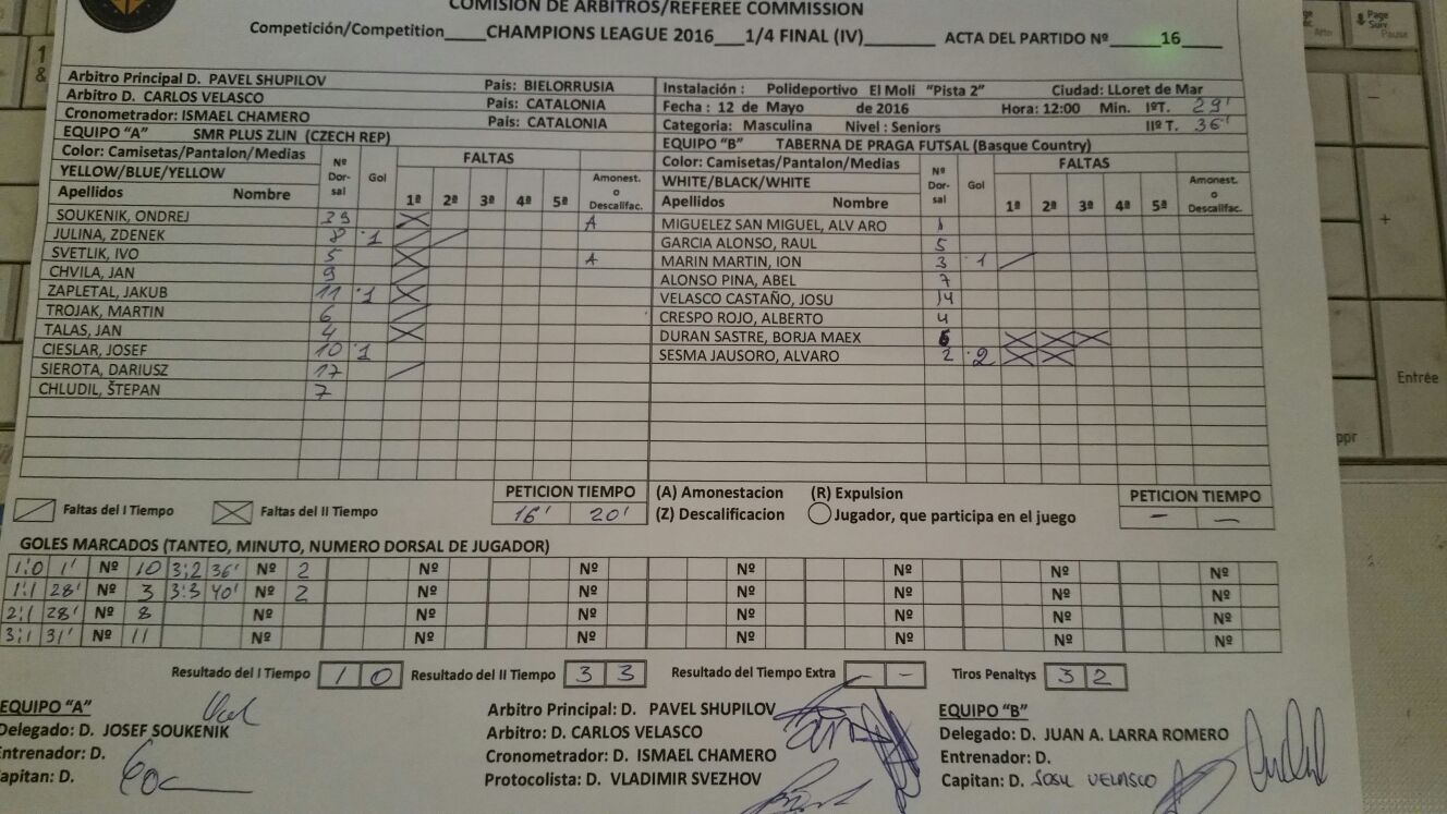 Desde Favafutsal, a continuación les informamos, que el equipo de Liga Vasca Taberna de Praga, ha caído eliminado por penaltis en la Champions League de Clubes ante el equipo checo del SMR FUTSAL Zlin, tras empatar a 3 en el tiempo reglamentario.