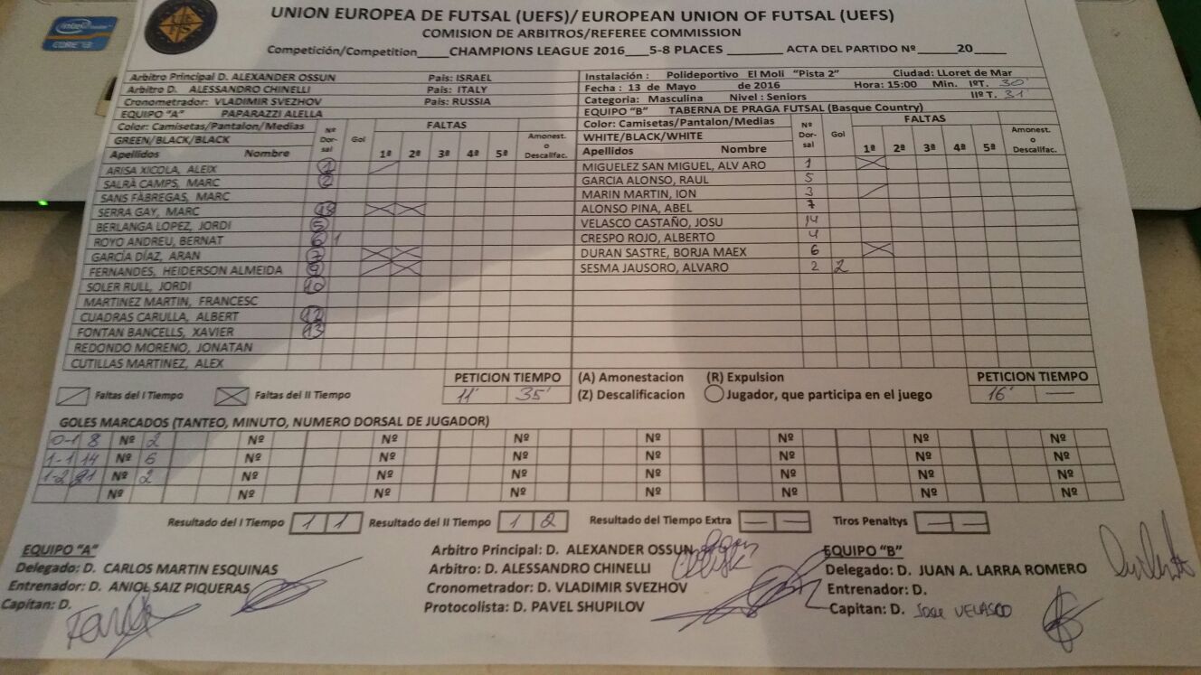 Desde FAVAFUTSAL les comunicamos, que Taberna de Praga ha concluido en quinta posición de la XXVI edición de la Champions League de Clubes, tras vencer al Alella por 2 goles a 1.