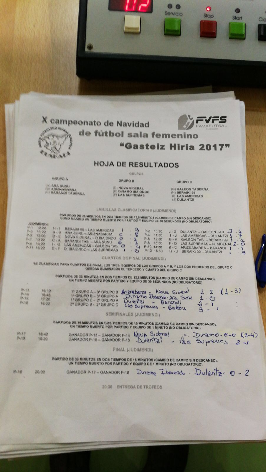 Desde FAVAFUTSAL EUSKADI, a continuación os informamos que el equipo Dulantzi se ha proclamado campeón del X Torneo Femenino de Futsal de Navidad “Gasteiz Hiria” 2017, disputado el pasado domingo 17 de diciembre en el polideportivo de Judimendi de Vitoria-Gasteiz y patrocinado por nuestro colaborador oficial McDonald's Vitoria-Gasteiz.