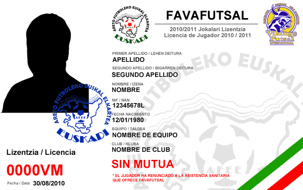 El formato será tipo D.N.I y las mismas llevaran impreso tanto en la parte delantera como trasera el logo de VIKINGS FUTSAL INTERNATIONAL, franquicia a la cual pertenecemos y que situa a FAVAFUTSAL en una organización de nivel mundial.