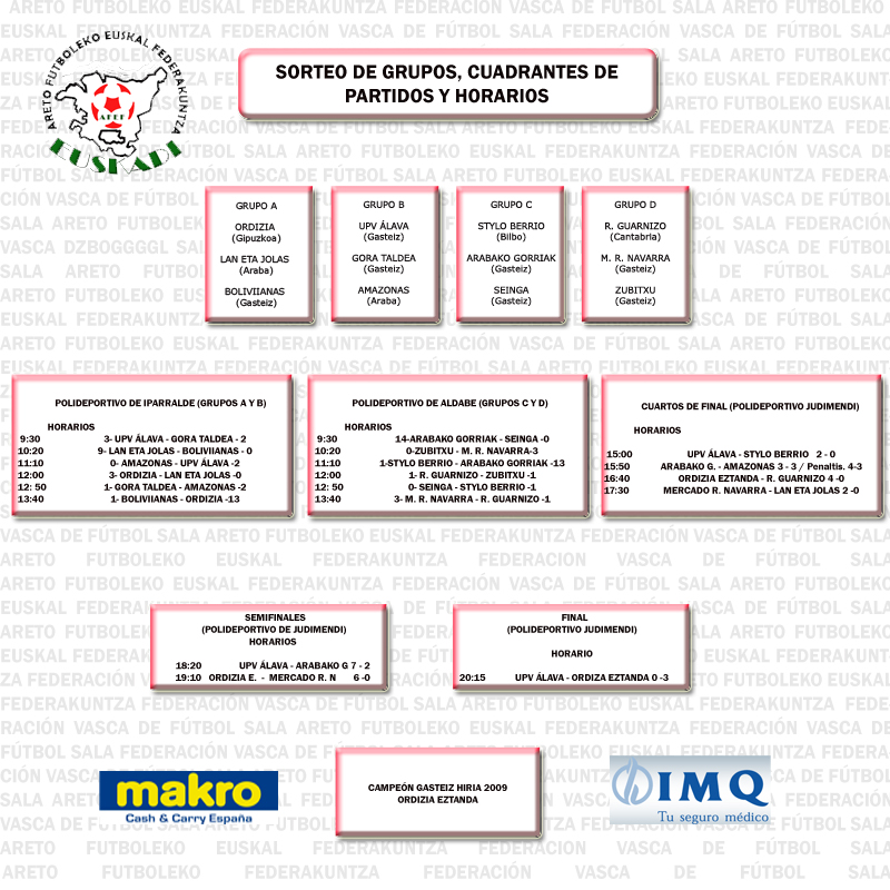 Aqui podeis descargaros los resultados del Torneo de Futbol Femenino Gasteiz Hiria 09, que fue un éxito tanto de público como de participación.